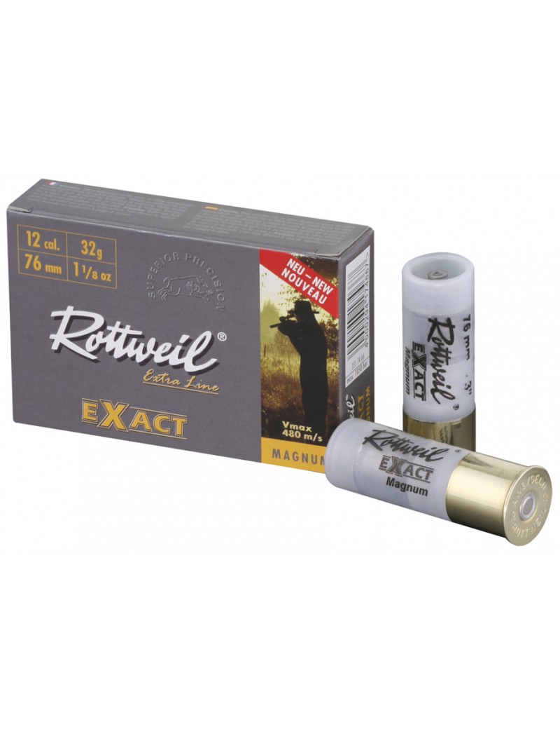 Le tir du grand gibier au canon lisse, exige une grande précision. L'animal doit être tiré jusqu'à une cinquantaine de mètres et sans nécessiter de recherche au sang. La balle de fusil EXACT est très équilibrée, ce qui en fait la plus précise que Rottweil n'ait jamais fabriquée jusqu'alors.
