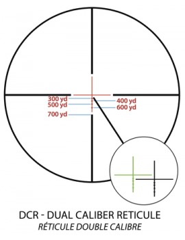 Cette lunette comprend un réticule BDC Duplex et est calibré pour les munitions .223 et .308