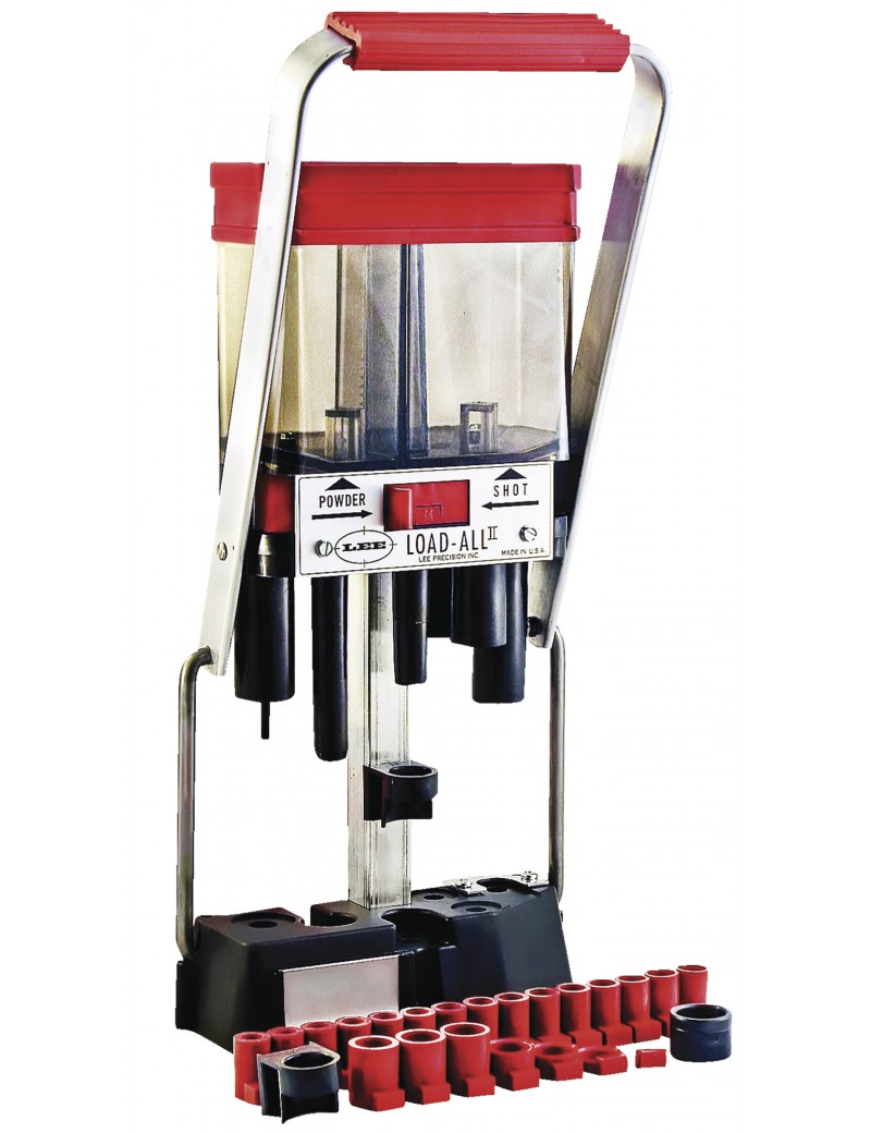 Presse Lee complète pour recharger les cartouches de fusil de chasse calibre 12 avec 24 logements pour la grenaille et la poudre. Charge les cartouches de 70 mm et 76 mm. Rien d'autre n'est nécessaire. Comprend le matériel de montage pour la fixation sur l'établi.