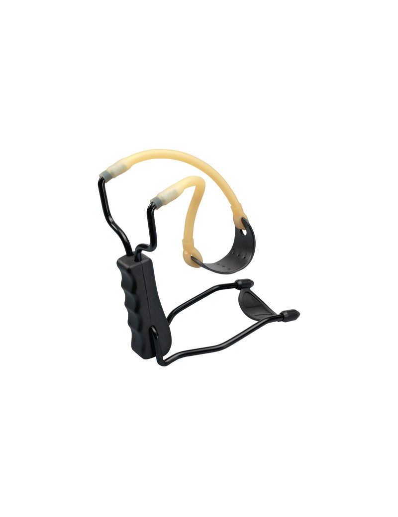 Lance-pierres avec poignée ergonomique. En métal, repose-bras, élastique tubulaire.